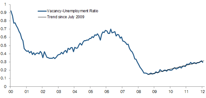 Was das mittelfristige Wirtschaftswachstum in China angeht, herrscht Optimismus, zumal die chinesische Regierung offenbar eine wachstumsfördernde Politik betreibt. In Europa deuten Frühindikatoren an, dass die Wirtschaft sich weiter erholen wird. Auch die industrielle Produktion in Japan hat noch reichlich Spielraum für einen starken Rebound in den kommenden Monaten. Die Risikobereitschaft ist weltweit um 1 Punkt auf 2,8 gesunken, was vor allem der schwachen Wertentwicklung von Aktien aus den europäischen Peripherieländern zuzuschreiben ist. Ebenfalls zurückgegangen ist die Bereitschaft, Kreditrisiken einzugehen – eine Folge der schwachen Ergebnisentwicklung einiger Finanzkonzerne. In Teilen des agenturunabhängigen Hypothekenmarkts haben die Konditionen zuletzt nachgegeben und auch die Stahlpreise sind unter Druck geraten, was bisweilen auf eine nachlassende Wachstumsdynamik hindeutet.