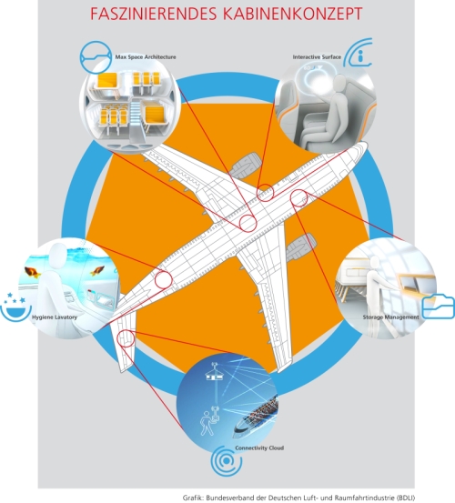 Die in Deutschland ansässige Luftfahrtindustrie entwickelte in den letzen Jahren im Rahmen des BDLI-Kompetenznetzwerks Cabin / Cargo ein gemeinsames Konzept für künftige Kabinen- und Frachtraumlösungen. Unter dem Slogan „Imagine innovations flying tomorrow“ visualisierten sie fünf bahnbrechende Entwicklungen für den Einsatz im Kurz- und Mittelstreckenverkehr.
